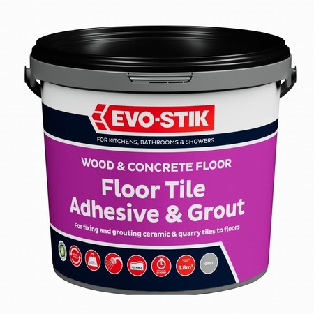 EVO-STIK Floor Tile Adhesive & Grout for Concrete Floors is a ready-to-use adhesive & grout specially developed for tiling ceramic or quarry tiles directly onto interior concrete and screed floors.