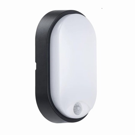 Exterior residential bulkhead oval 700lumens with white or black bezel + PIR