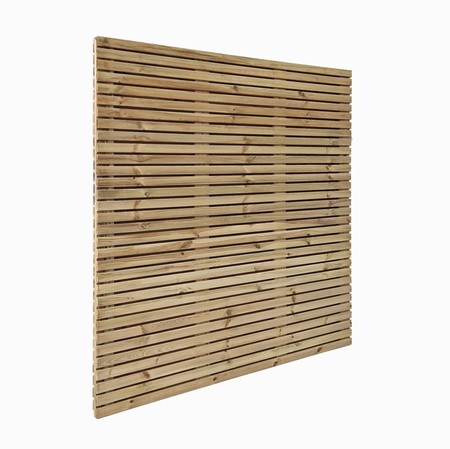 A heavyweight fence panel that combines a contemporary design with strength; making this the perfect fence for the modern garden. This substantial pressure treated green panel is double sided and uses horizontal boards offering maximum privacy. Matching contemporary garden structures and planters are available to create a harmonised collection within the garden.