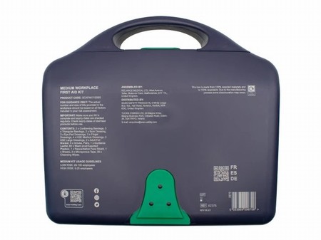 This Scan First Aid Kit comes in a compact ‘briefcase’ style kit box made of polycarbonate. Inculdes sufficient content to safeguard 1-100 persons in a workplace. Approved by the British Standards Institute. Contains: