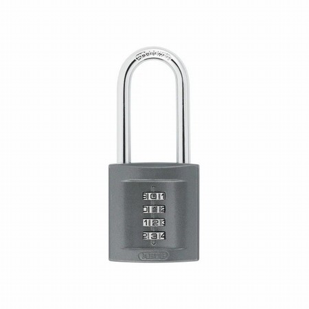 The ABUS 158 Series Combination Padlock with a solid die-cast zinc body and a hardened steel shackle. 3-digit (40mm), 4-digit (50mm), or 5-digit (65mm) resettable combination where you can set your own PIN.